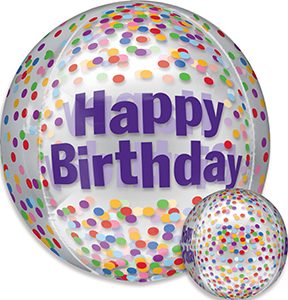 Happy Birthday Day Clear Confetti Orbz 16 inch P
