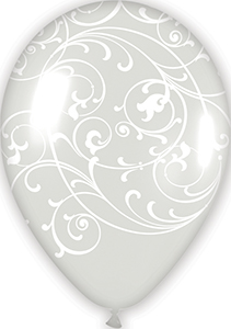 Pretty Filigree pattern printed on a Betallatex Crystal Clear latex balloon.
