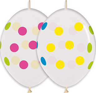 12 inch LINK-O-LOON Multi Dots Crystal Clear Betallatex balloon.