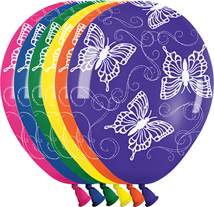 5 inch Butterfly Flight Assortment of Betallatex Latex printed balloons by Betallic.