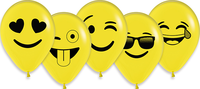 5 inch Emoji Assortment of Betallatex Latex printed balloons by Betallic.