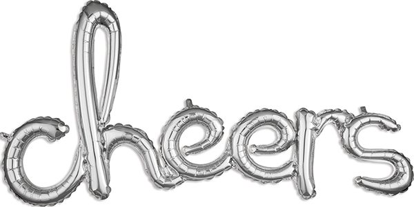 “cheers” – Consumer Inflated Word balloon in silver by Anagram.