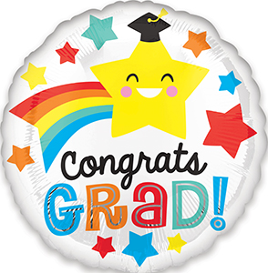 Bright and cheery congrats abound for your graduate with this star studded HeXL balloon by Anagram.