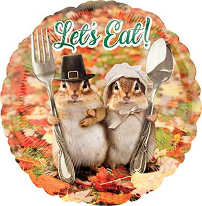 Turkeys, pumpkins, fall leaves – this pretty balloon has everything needed to complete a Thanksgiving celebration.