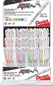 Add a pop of pizzazz to any page with these milky pastel ink colors. Colors contrast well with dark colored paper to make your writing and artwork stand out. Display contains 14 each of white, orange, pink, sky blue, violet, and 7 each of yellow and mint green.