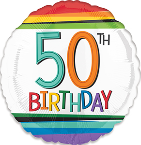 Rainbow Birthday 50 standard size balloon by Anagram.
